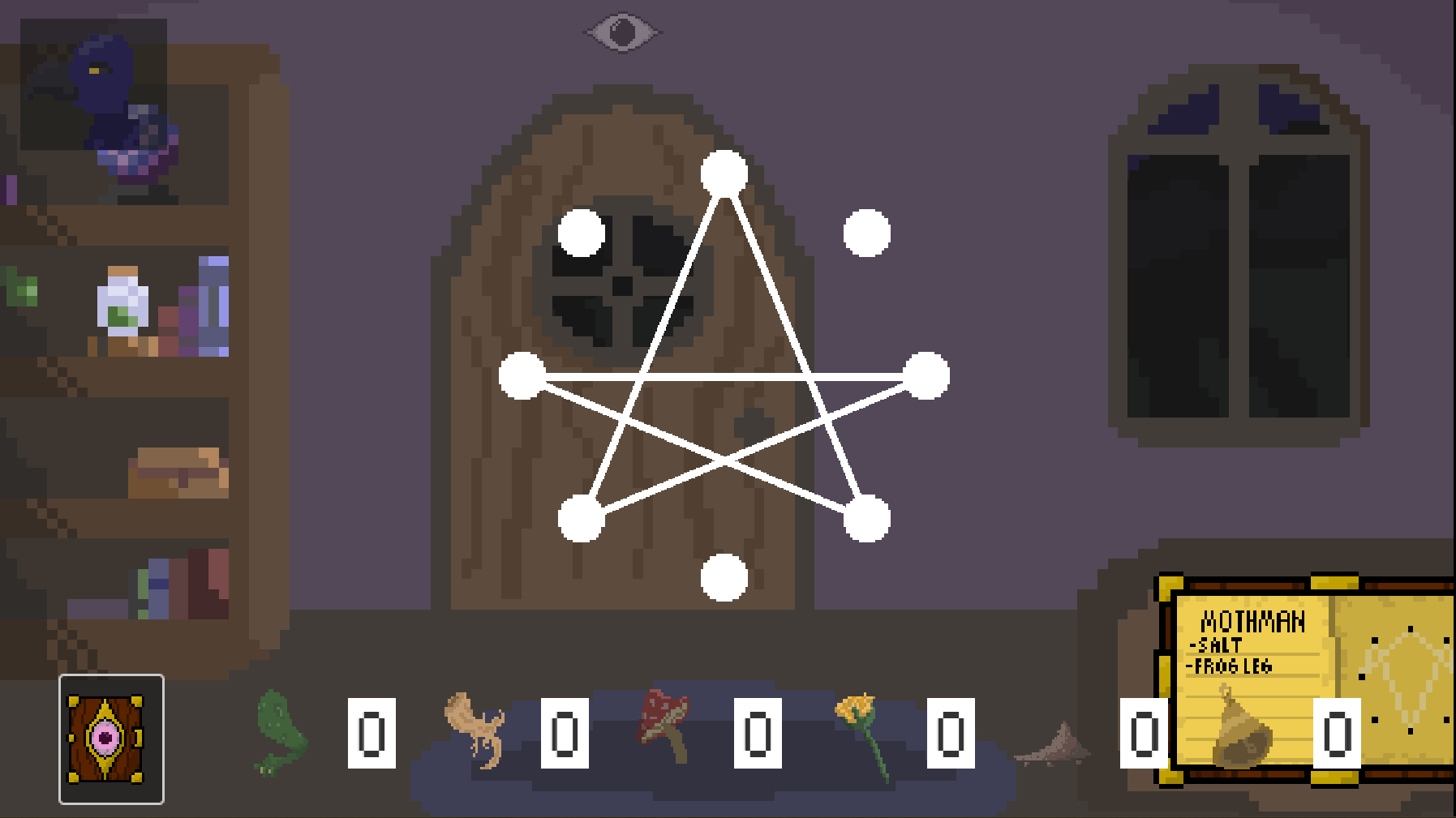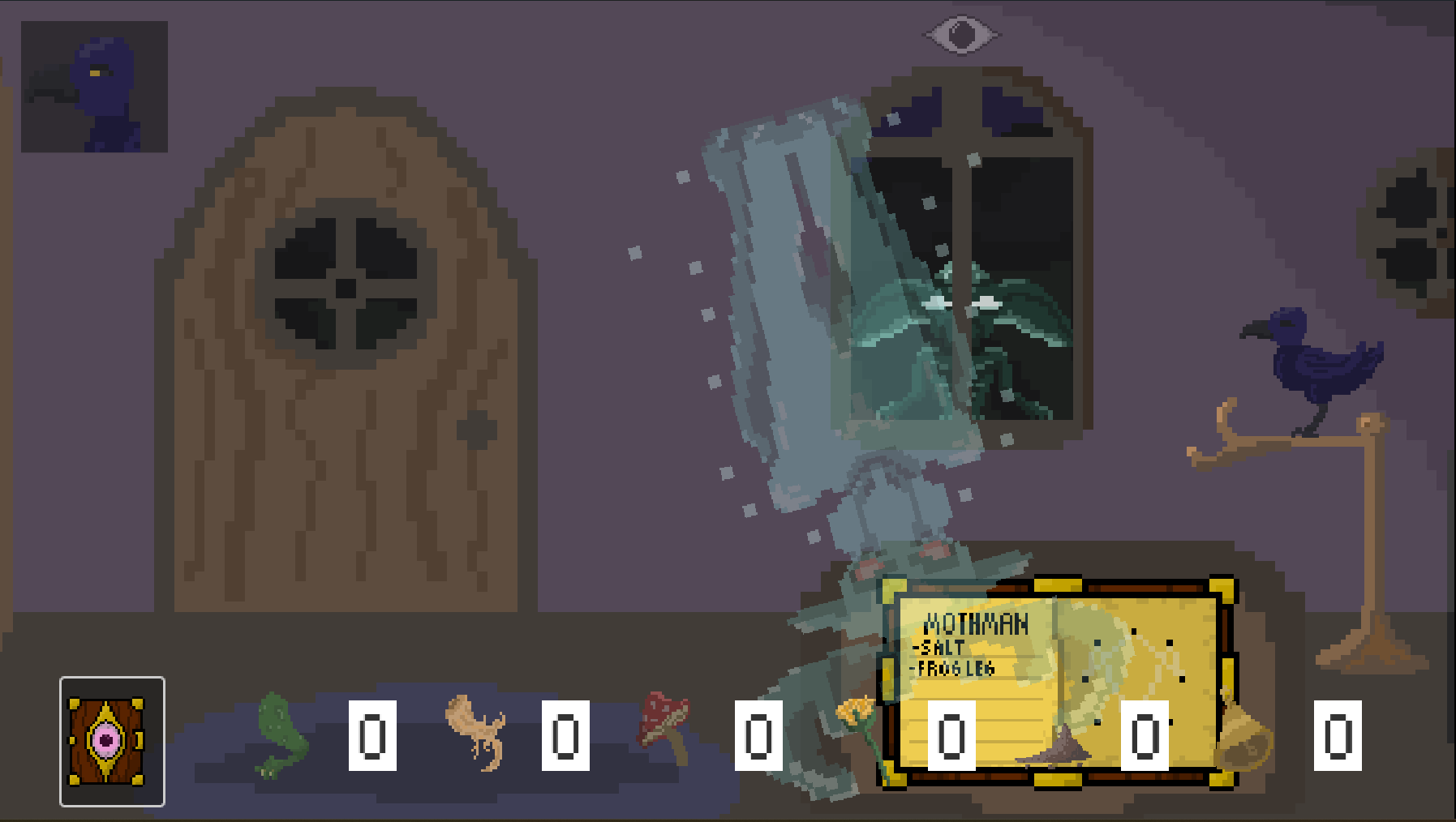 A new IP title made for the Toxic Terror Game Jam. Something Wicked takes place inside a witch's hut, where it's your goal as the witch to survive long enough to cast the final spell. Cast spells and fend off against American Cryptids in this twist on the Sit and Survive theme. Utilize your crow companion to gather resources to survive. And if you need a reminder on spells, the spell book is always on the table. May the Wicked not terrorize your night.